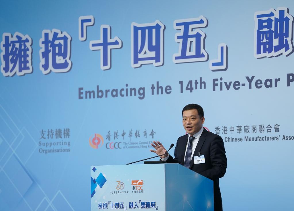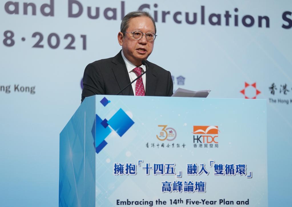 作為國家“十四五”規劃宣講團在港系列宣講活動的重要組成部分,“擁抱‘十四五’ 融入‘雙循環’”高峰論壇24日在香港會展中心舉行,由香港中國企業協會和香港貿發局主辦。來自香港工商界、學術界、外國商會和外資企業代表,以及中企協會會員代表等300余人與會。林建岳出席論壇開幕式時發表上述致辭。