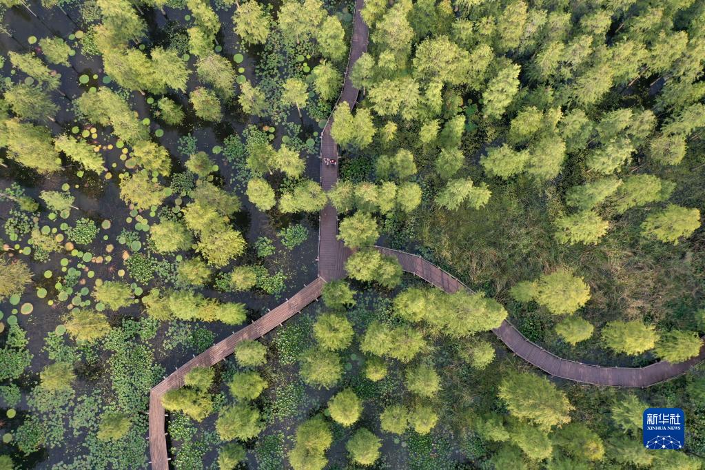 俯瞰池杉林(9月14日攝,無人機照片)。