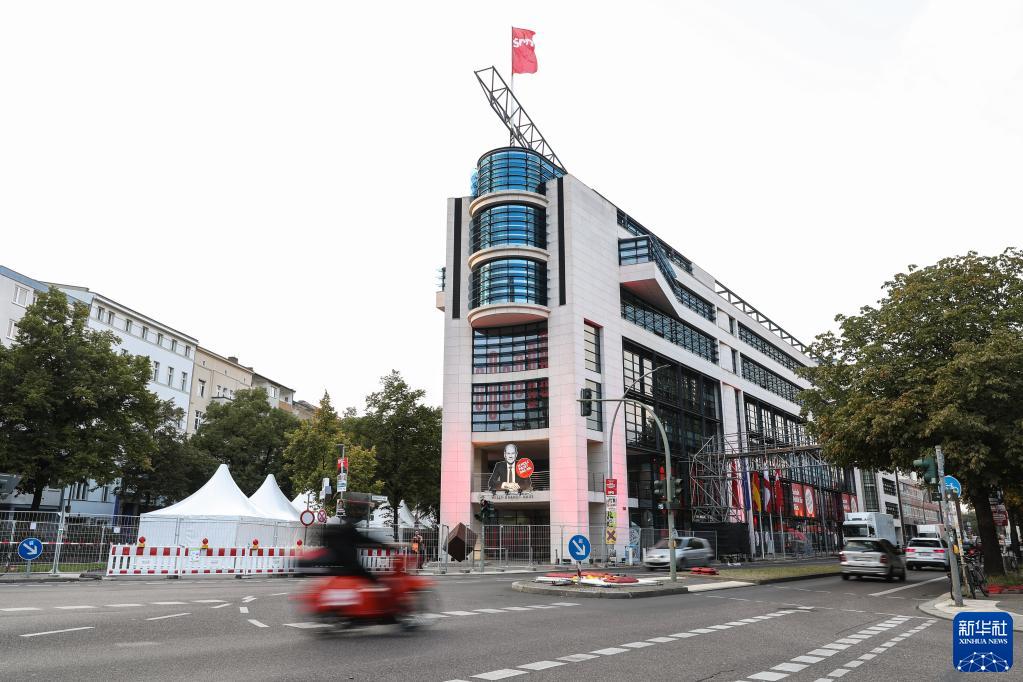 9月25日,車輛經過德國首都柏林的德國社會民主黨(社民黨)總部。