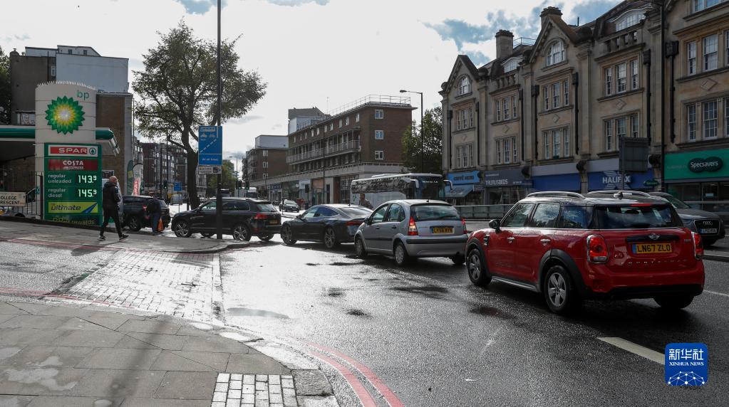 9月27日,車輛在英國倫敦一家加油站外排隊加油。