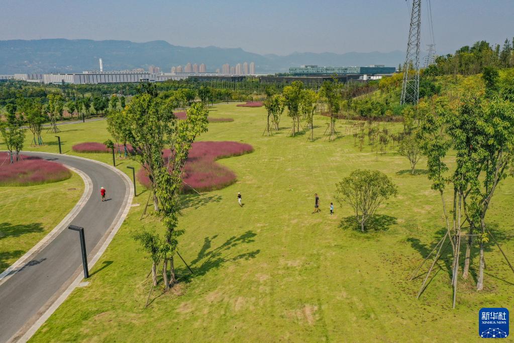 10月2日,人們在重慶市兩江新區粉黛山公園游玩(無人機照片)。