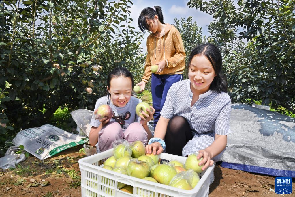 10月2日,游客在青島西海岸新區(qū)寶山鎮(zhèn)果園里采摘蘋果。