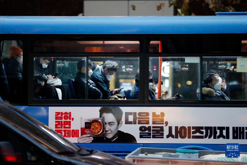 11月29日,佩戴口罩的市民在韓國首爾乘坐公交車。新華社記者 王益亮 攝
