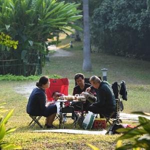 12月11日,在廣西南寧市南湖邊,市民在休閑娛樂。