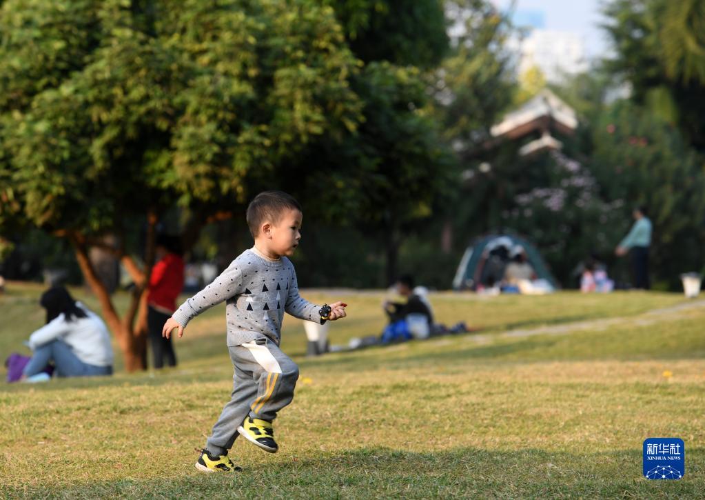 12月11日,在廣西南寧市南湖邊,一名小朋友在奔跑。