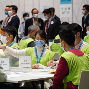 12月19日,香港順利舉行完善選舉制度后首次立法會選舉投票,工作人員點票現場。新華社記者 呂小煒 攝