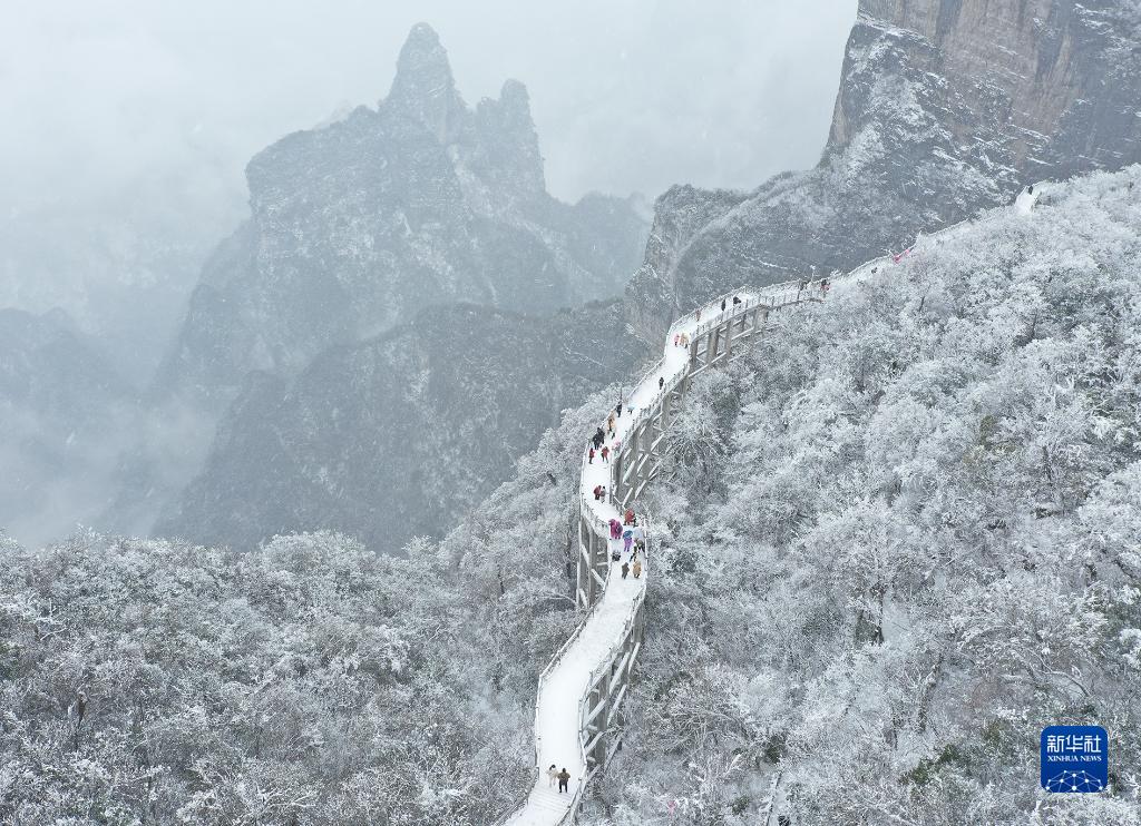 12月27日,游客在湖南省張家界天門山景區觀賞游玩(無人機拍攝)。