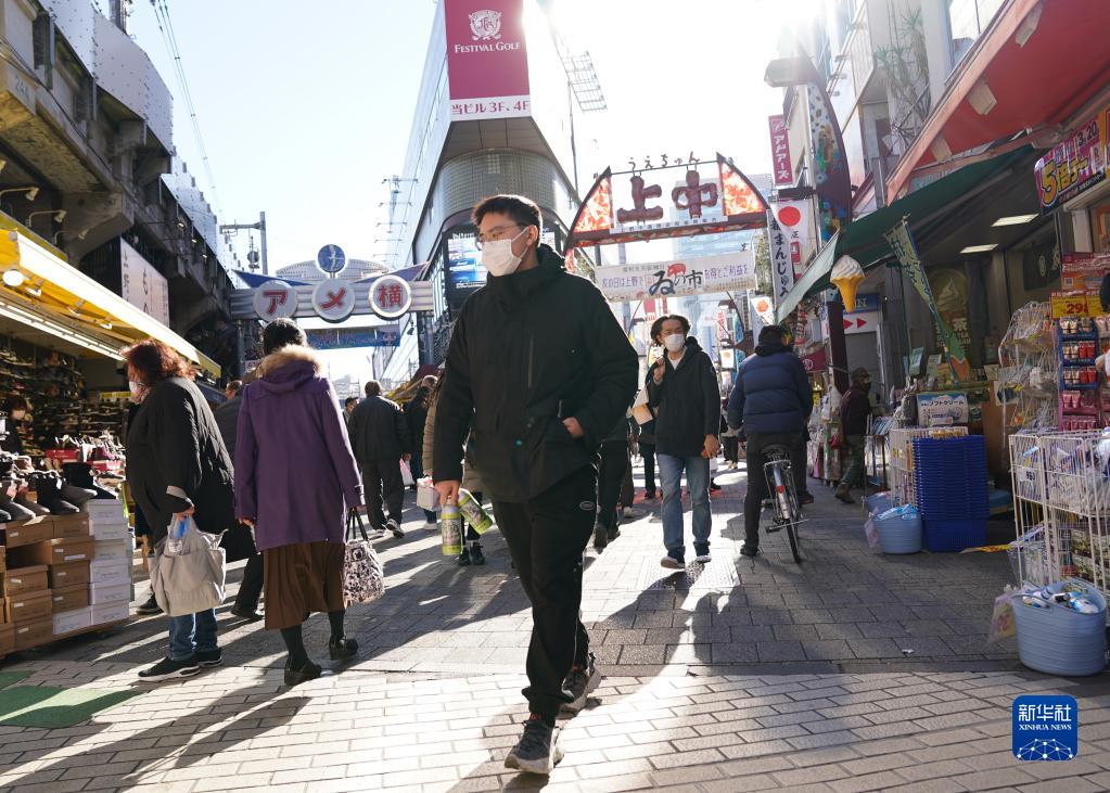 12月28日,人們在日本東京阿美橫町購買促銷商品。