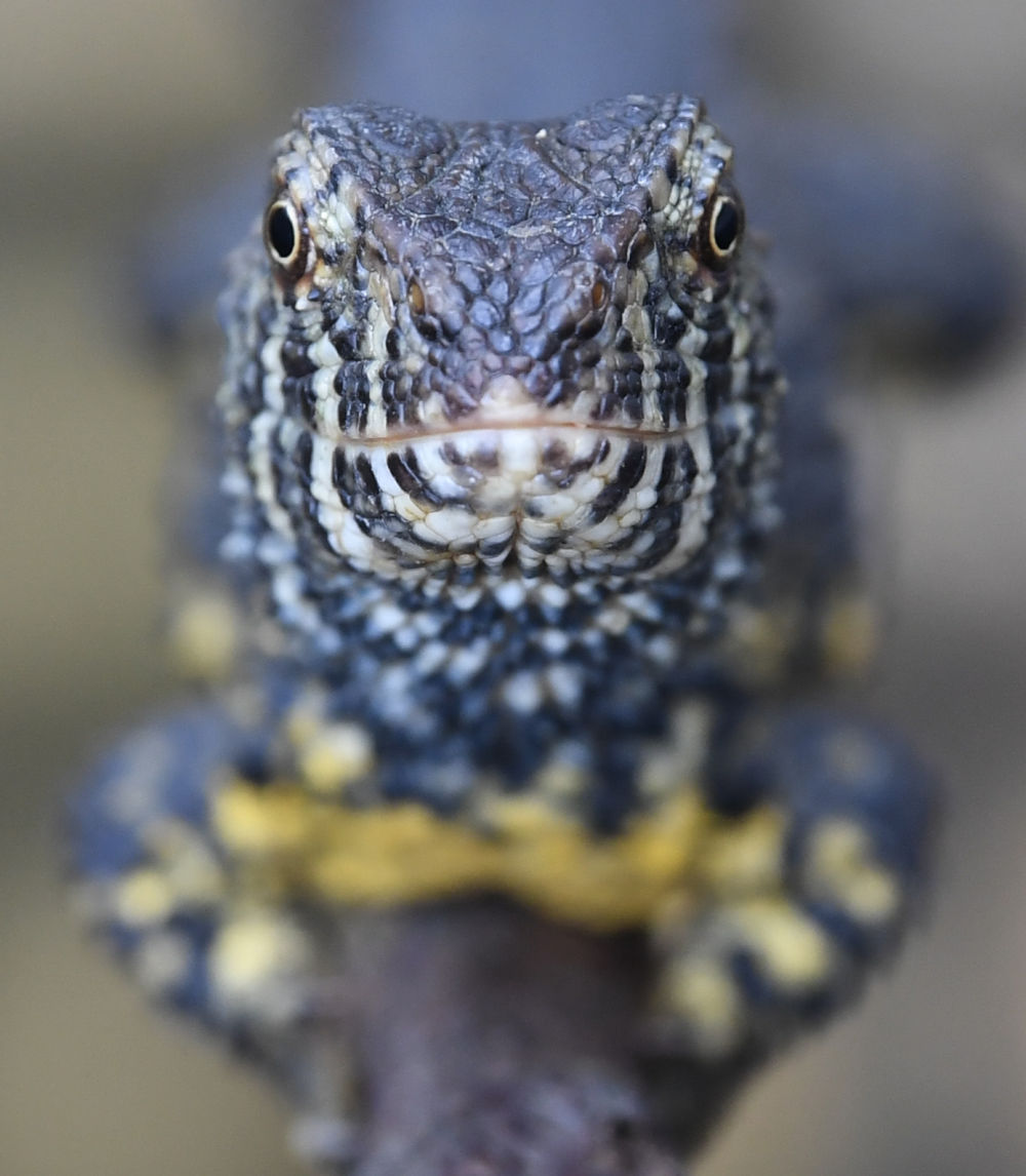 ↑2021年5月13日在廣東羅坑鱷蜥國家級自然保護區鱷蜥研究中心拍攝的鱷蜥頭部特寫。