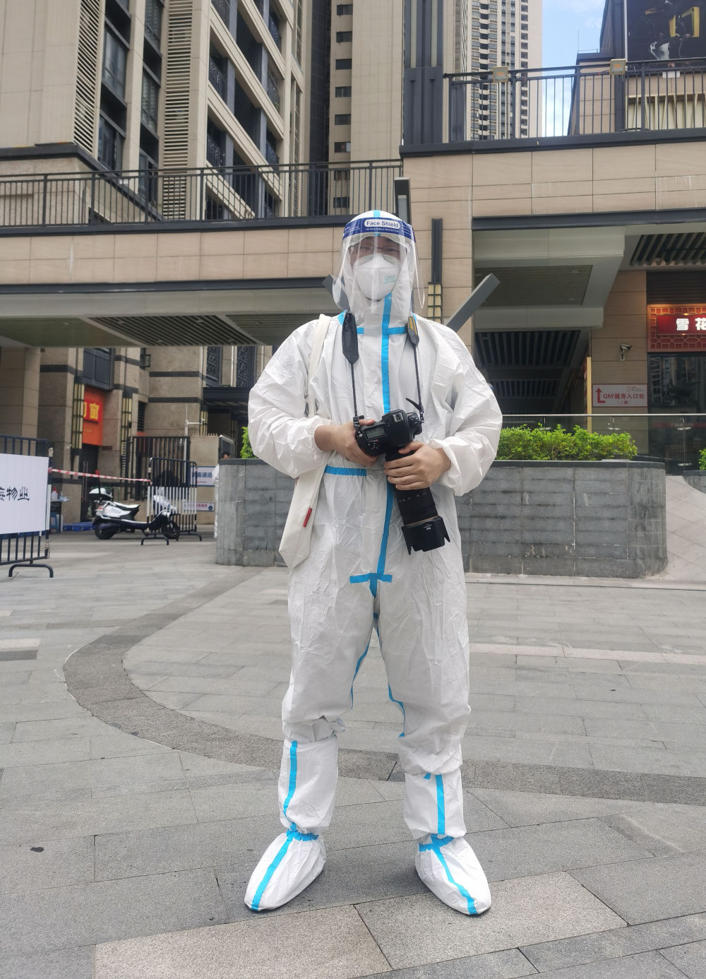 6月12日,借助物業贈送的防護服,我用口袋相機拍攝了一個行進式的VLOG。設備是之前準備出差時用的,沒成想這時候派上了用場。廣州的夏天穿上防護服真是感覺悶在桑拿房里一樣,隨時都能感受到汗珠在順著手臂和身體流淌。穿著防護服總共約一個小時,脫下后,人像是從水里撈出來一樣,上衣和短褲都完全被汗水浸透了,衣服都能擰出水來。可想而知那些必須長時間穿著防護服工作的醫務和防疫人員,他們的付出和奉獻有多大。