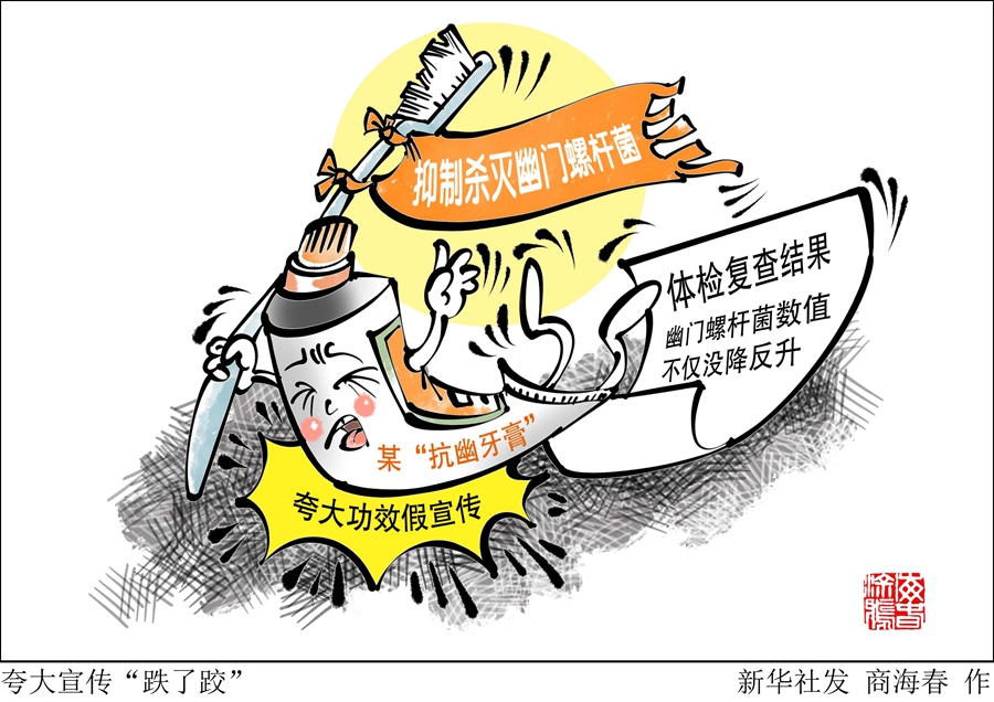 新華社記者從國家藥監局獲悉,幽門螺旋桿菌定植在胃中,無法通過用牙膏刷牙預防或治愈。目前市場在售的所謂“抗幽牙膏”大部分都是打著“專利”“高科技”幌子,通過在部分網絡平臺大量投放虛假廣告蒙騙消費者。