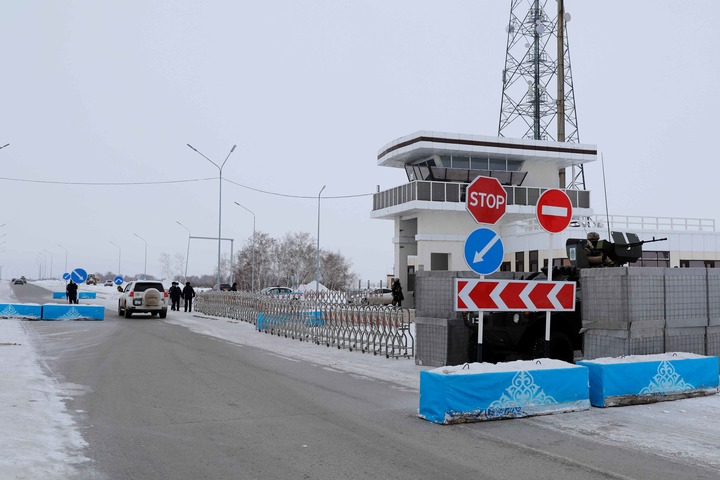 1月7日,哈薩克斯坦執(zhí)法人員在努爾蘇丹的進出城檢查站加強巡查。新華社發(fā)(奧斯潘諾夫攝)