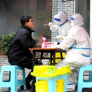 1月10日,人們在鄭州市緯一路一核酸檢測點接受核酸檢測取樣。