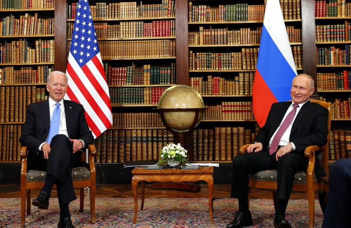 2021年6月16日,美國總統拜登(左)和俄羅斯總統普京在瑞士日內瓦的拉格朗熱別墅舉行會晤。(新華社發)