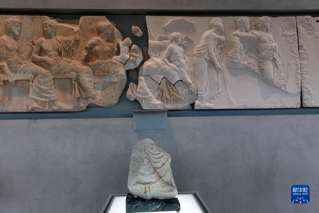 1月10日,一塊原保存于意大利一家博物館的雅典衛(wèi)城帕特農(nóng)神廟石雕碎片在希臘雅典衛(wèi)城博物館展出。
