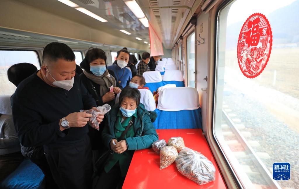 吉林通化至遼寧丹東的4318/7次列車是一輛行駛在東北東部山區的慢火車。為助力鄉村振興,中國鐵路沈陽局集團有限公司吉林客運段在列車上開辦“年貨大集”。沿線各村鎮的農民不用等到進城,就可在車廂里售賣自家山貨。