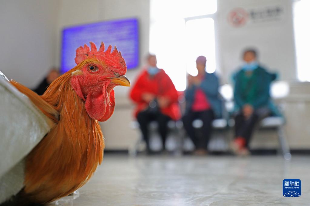 1月15日,在遼寧省鳳城市石城站,農民帶著準備售賣的公雞在候車室休息。