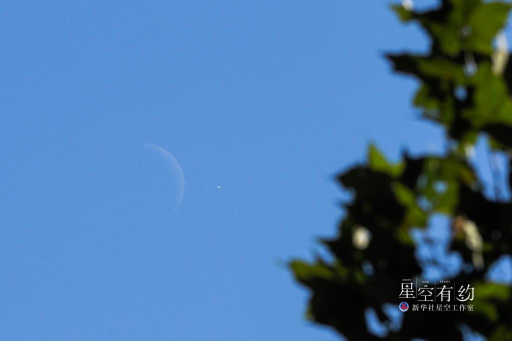 北京市天文愛好者王俊峰2021年11月8日中午在北京拍攝的金星合月。(本人供圖)