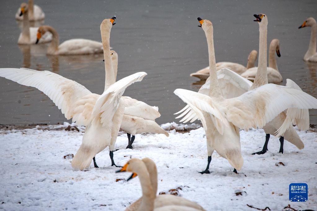 這是2022年1月23日在河南三門(mén)峽天鵝湖國(guó)家城市濕地公園拍攝的白天鵝。
