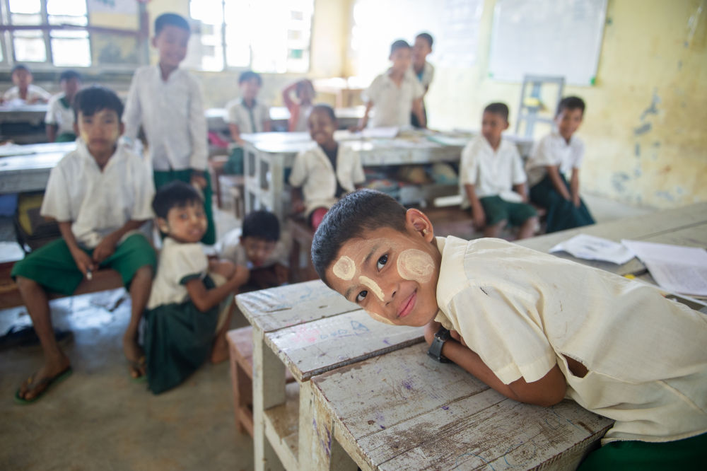 這是2020年1月13日在緬甸皎漂馬德島雅瑪小學拍攝的學生。新華社記者 杜宇 攝