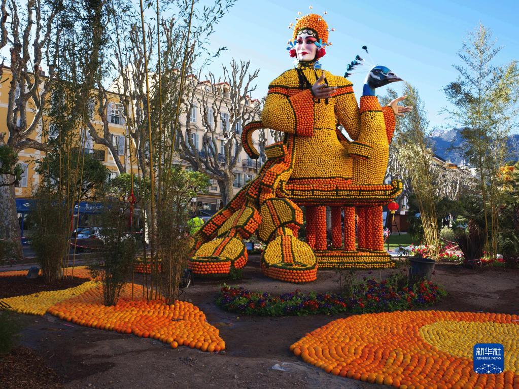 這是2月9日在法國南部小城芒通拍攝的檸檬節藝術裝置。