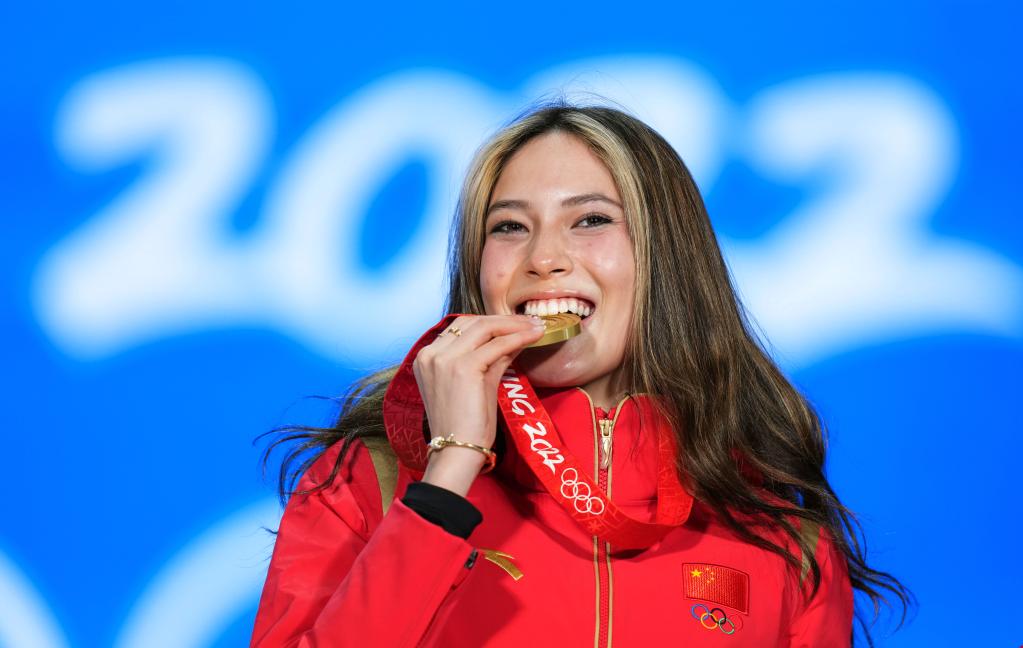 2月8日,谷愛凌在獎牌頒發儀式上。新華社記者鞠煥宗攝