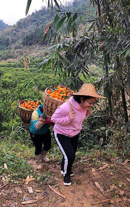 黃文秀與村民一起采摘運輸砂糖橘(資料照片)。新華社發