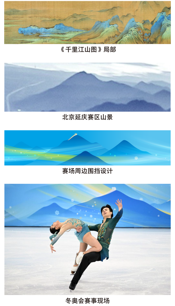 《千里江山圖》在北京冬奧會場館景觀設計中的應用示例。