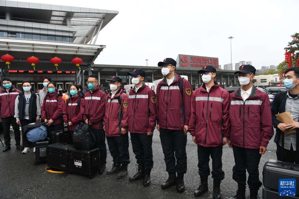 2月17日,內地支援香港抗疫流行病學專家組在深圳灣口岸集結。新華社記者 梁旭 攝