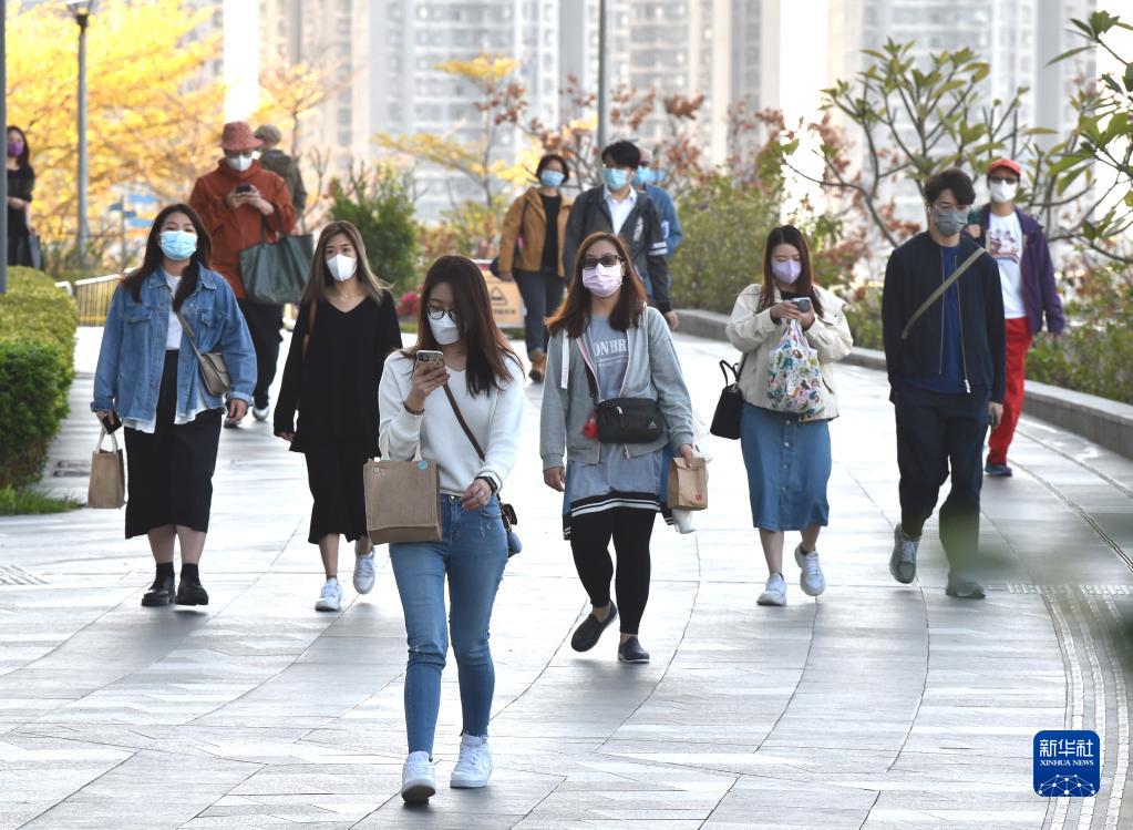 3月10日,在香港荃灣,市民佩戴口罩出行。新華社記者 盧炳輝 攝
