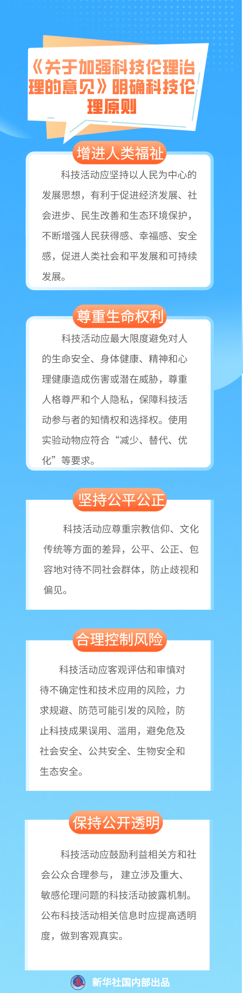 此次兩辦印發的意見不僅提出了“倫理先行、依法依規、敏捷治理、立足國情、開放合作”的科技倫理治理要求,更明確了“增進人類福祉、尊重生命權利、堅持公平公正、合理控制風險、保持公開透明”的科技倫理原則。