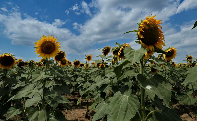 這是2019年7月9日在烏克蘭南部敖德薩州拍攝的盛開的葵花。烏克蘭盛產(chǎn)葵花,葵花籽油產(chǎn)量和出口量世界排名第一。新華社記者陳俊鋒攝