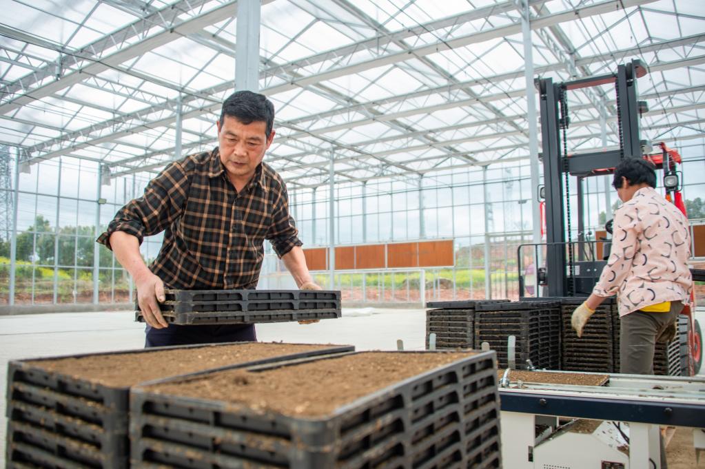 近期,在湖北省黃石市陽新縣,農(nóng)民搶抓農(nóng)時,修理農(nóng)用機械,開展水稻育秧工作,為春耕做準備。(新華社發(fā))
