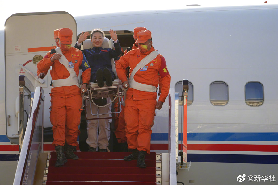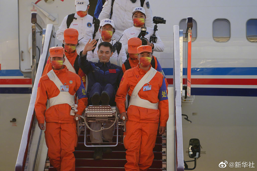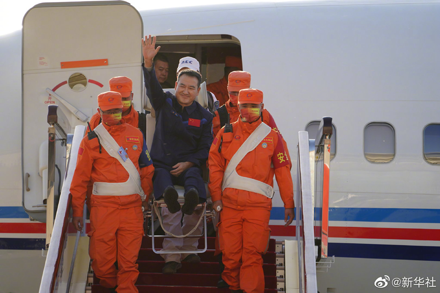 新華社北京4月16日電(記者郭明芝、田定宇)據(jù)中國載人航天工程辦公室消息,圓滿完成神舟十三號載人飛行任務(wù)的航天員翟志剛、王亞平、葉光富,于2022年4月16日下午乘坐任務(wù)飛機平安抵達北京??臻g站階段飛行任務(wù)總指揮部領(lǐng)導和成員到機場迎接。