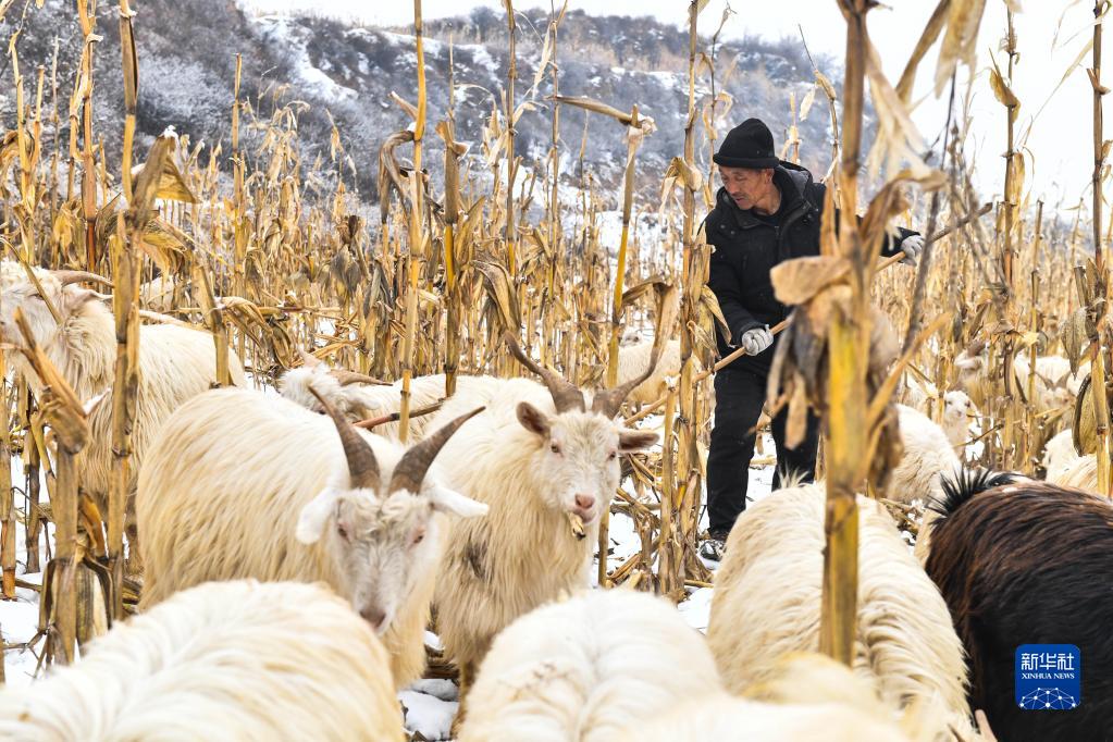 在山西省汾西縣僧念鎮(zhèn)段村,脫貧戶蔡文明在山上放羊(1月27日攝)。新華社記者 柴婷 攝