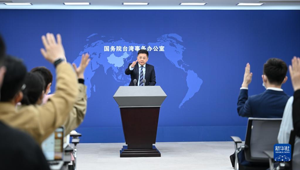 4月27日,國臺(tái)辦發(fā)言人馬曉光邀請(qǐng)記者提問。當(dāng)日,國務(wù)院臺(tái)灣事務(wù)辦公室在北京舉行例行新聞發(fā)布會(huì)。新華社記者 陳曄華 攝
