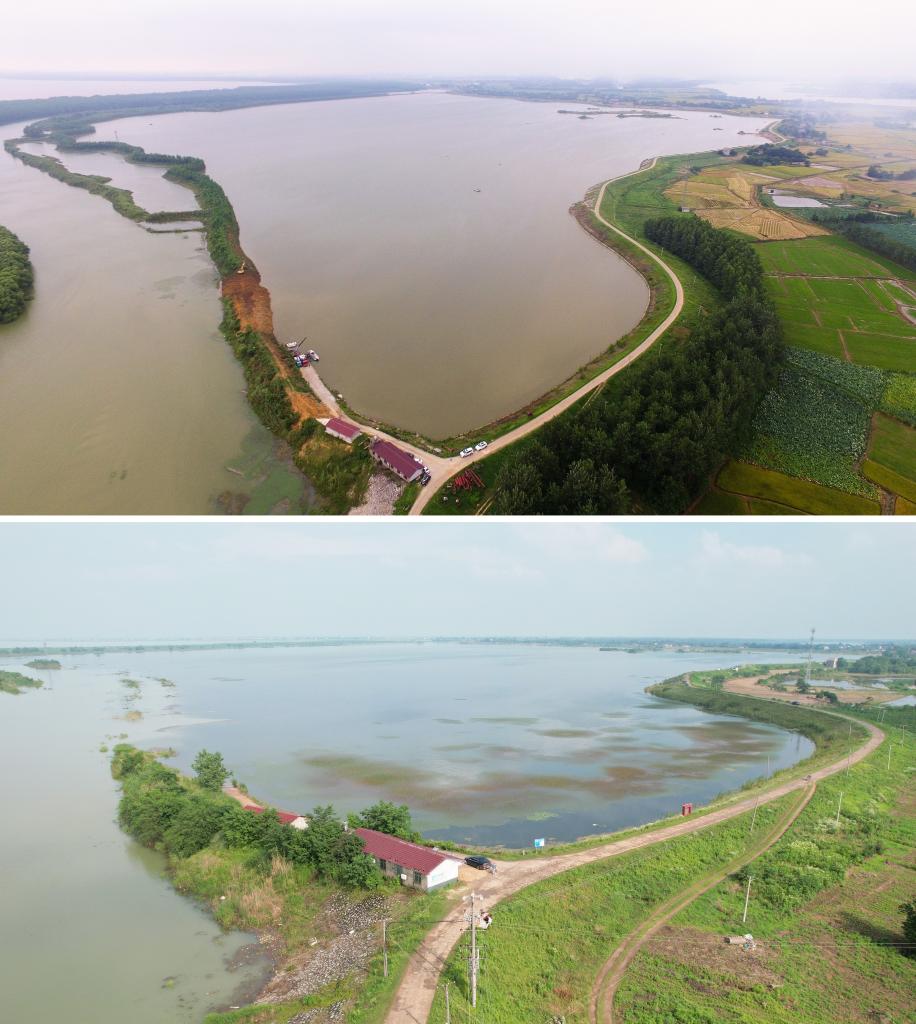 上圖:2018年拍攝的南洞庭車便湖矮圍被拆除前(湖南省沅江市委宣傳部供圖)