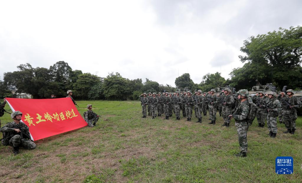 駐香港部隊某旅裝步一連組織官兵向連旗宣誓(5月10日攝)。新華社發(湯方律 攝)