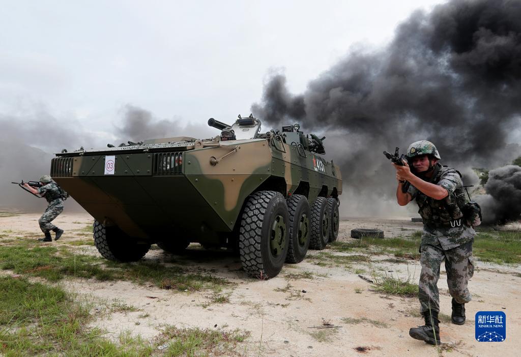 駐香港部隊某旅裝步一連組織人車協同訓練(5月24日攝)。新華社發(易定 攝)