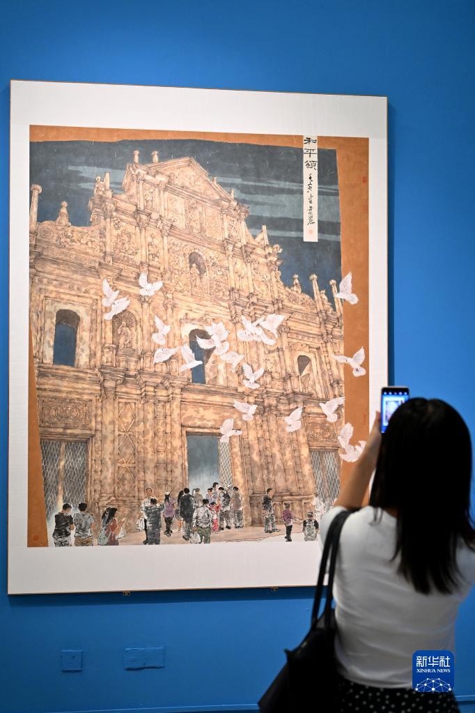 6月24日,參觀者在展覽上拍攝參展作品《和平頌》。 新華社記者 李鑫 攝