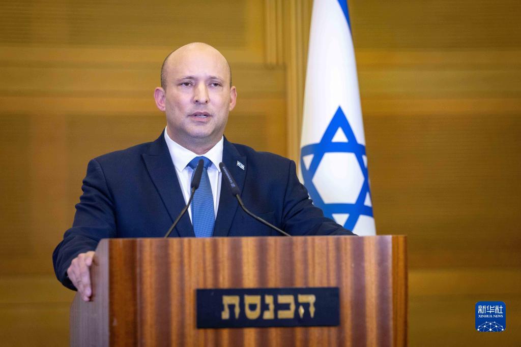 6月29日,在位于耶路撒冷的以色列議會,以色列總理貝內特出席新聞發布會。新華社/基尼圖片社