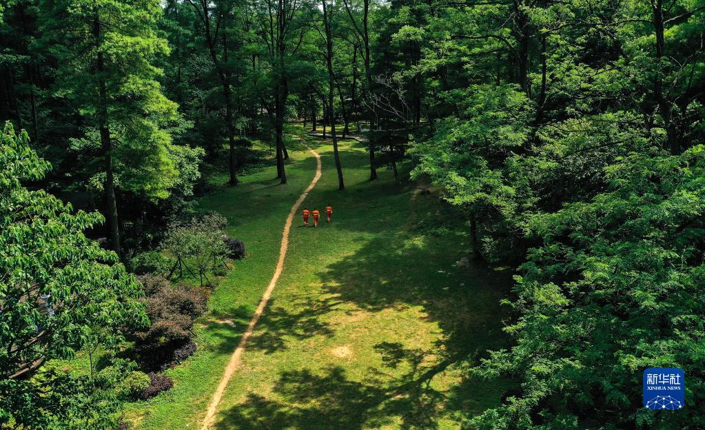 7月13日,護林員在貴陽市長坡嶺國家級森林公園里巡護(無人機照片)。 新華社記者 楊文斌 攝