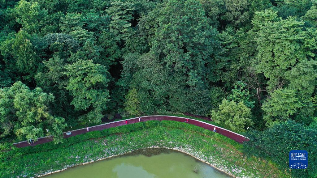 7月12日,市民在貴陽市長坡嶺國家級森林公園里散步(無人機照片)。 新華社記者 楊文斌 攝