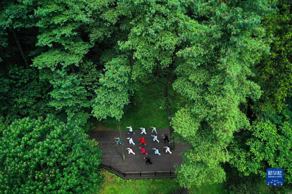 7月13日,市民在貴陽市長坡嶺國家級森林公園里健身(無人機照片)。 新華社記者 楊文斌 攝