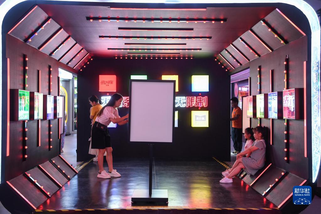 7月21日,小朋友在貴州省貴陽市南明區(qū)青云路改造過后的“青云市集”里留影。