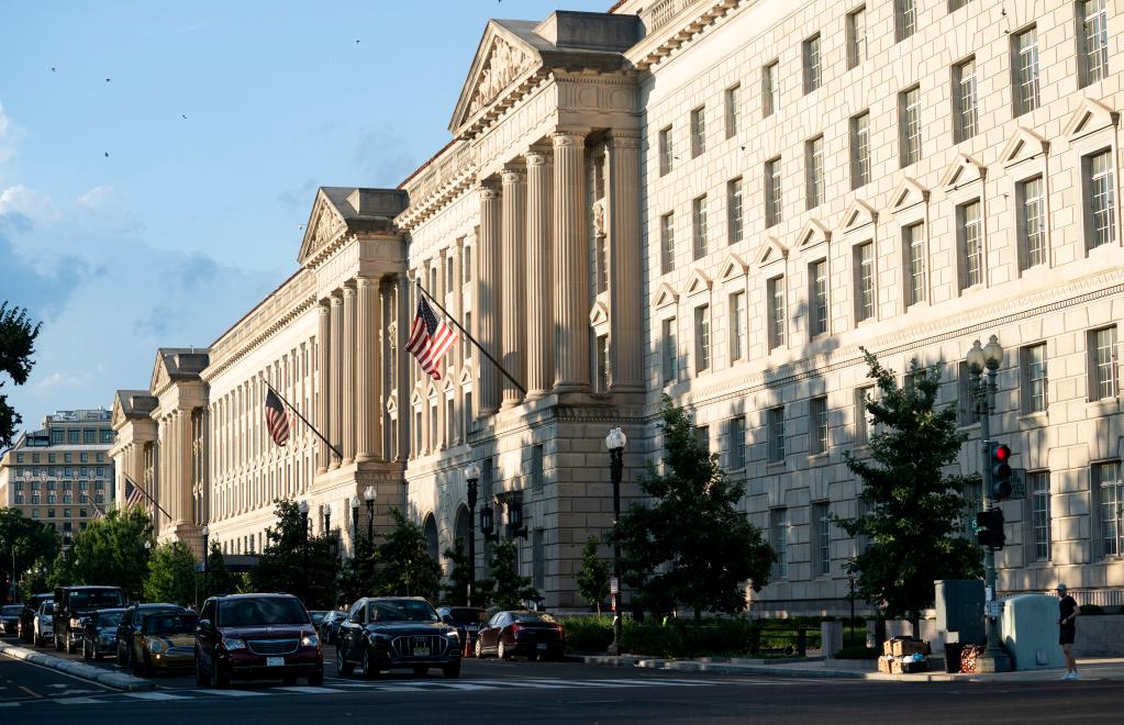 這是7月28日在美國首都華盛頓拍攝的美國商務部大樓。(新華社記者劉杰 攝)