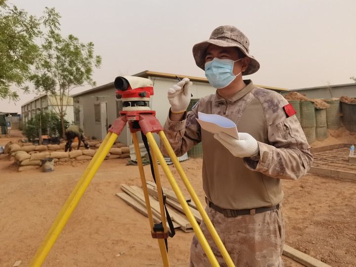 聯(lián)合國馬里多層面綜合穩(wěn)定特派團(tuán)(馬里穩(wěn)定團(tuán))尼日爾步兵營的營區(qū)內(nèi),中國赴馬里維和工兵分隊梅納卡分遣隊的戰(zhàn)士們正在執(zhí)行幫助尼日爾友軍修建防空掩體任務(wù)。他們在沉著冷靜作業(yè)的同時,必須繃緊神經(jīng)。