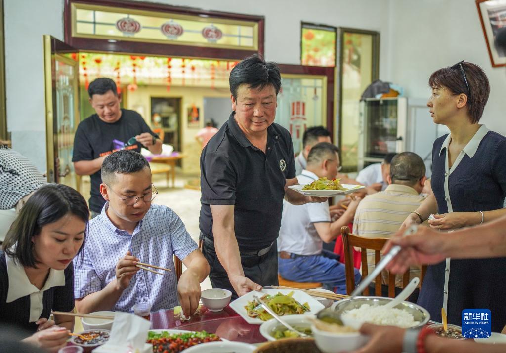 貴州省遵義市播州區楓香鎮花茂村村民王治強為到農家樂就餐的游客上菜(2022年6月28日攝)。新華社記者 陶亮 攝