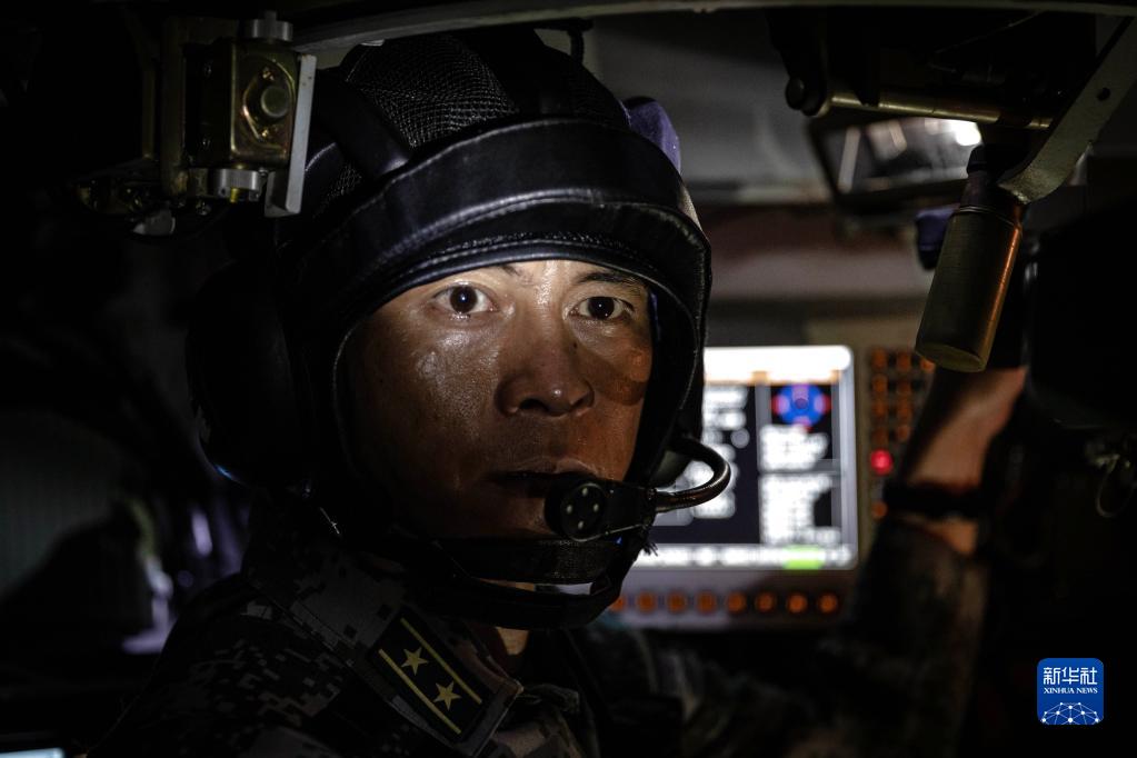 第73集團軍某旅合成營營長陳松在兩棲裝甲車內進行訓練(2022年6月18日攝)。新華社發(謝文劍攝)