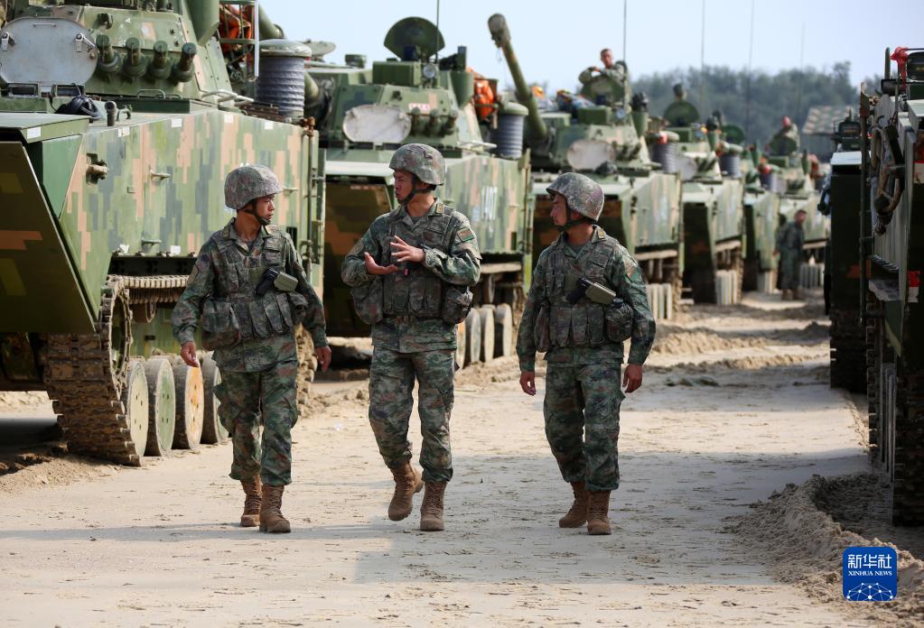 鐵甲踏浪,炮聲隆隆,兩棲合成營實兵演練正酣。